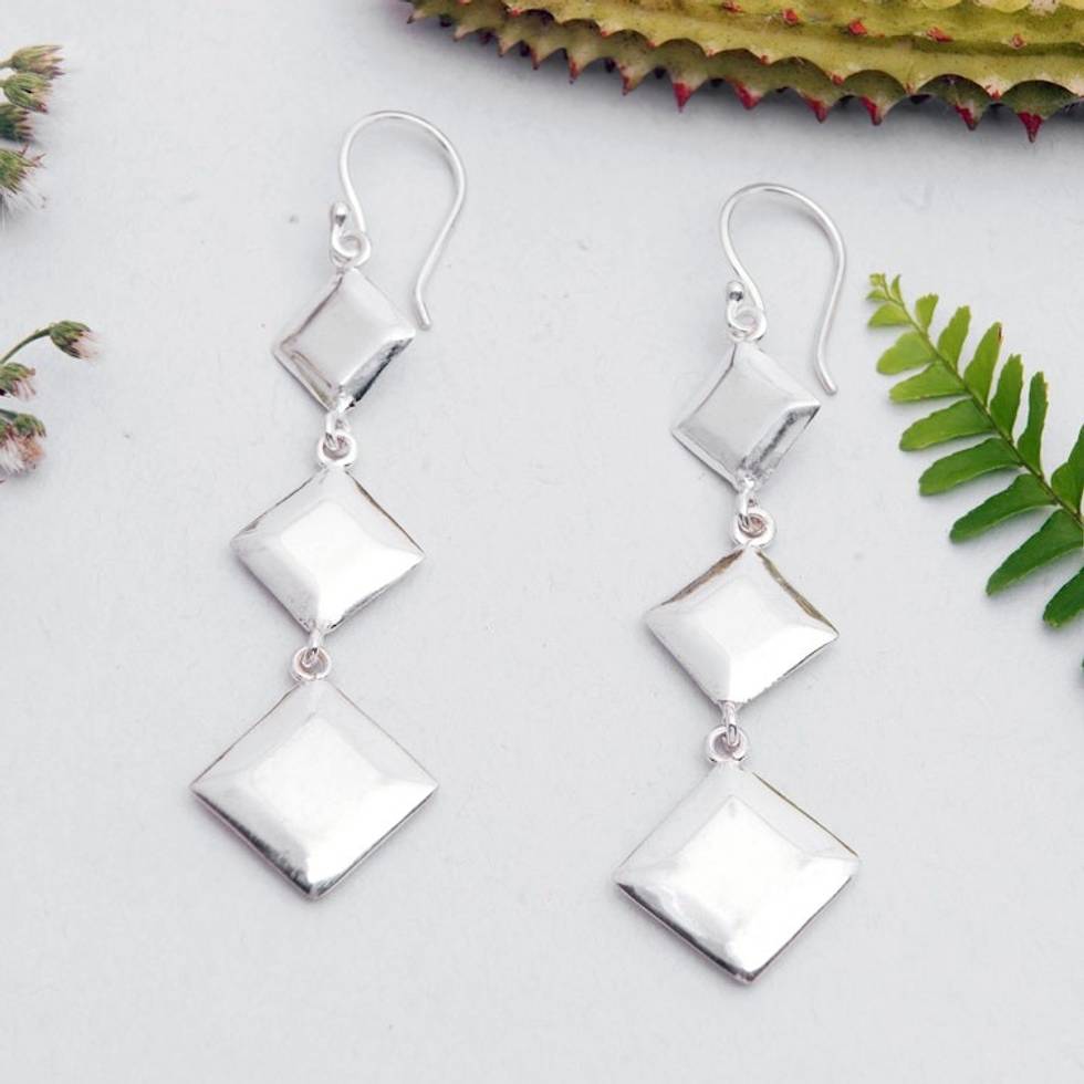 High-Polished Diamond-Shaped Sterling Silver Dangle Earrings 'Triple Diamonds' Item ID: 2671765720