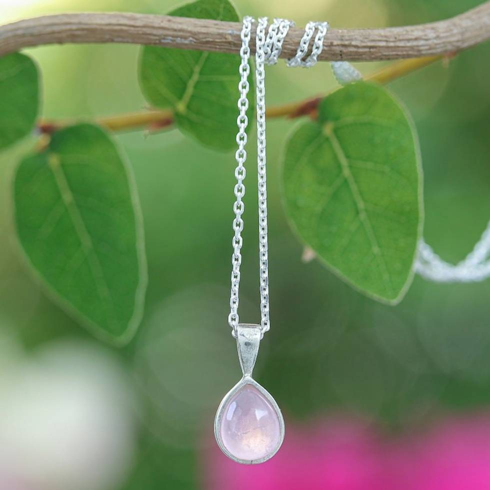 High-Polished Drop-Shaped Rose Quartz Pendant Necklace 'Drop for the Kind' Item ID: 2671796840