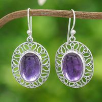 High Polished Floral Natural Amethyst Dangle Earrings 'Wise Lotus' Item ID: 2671798087