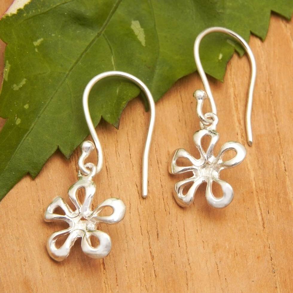 High-Polished Floral Sterling Silver Dangle Earrings 'Ethereal Blossom' Item ID: 2669919852
