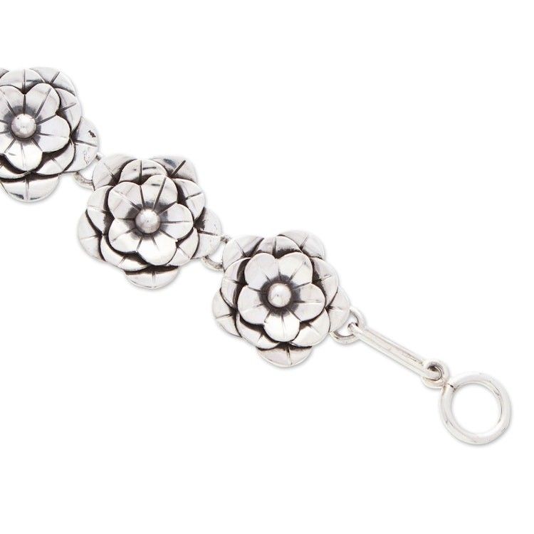 High-Polished Floral Sterling Silver Link Bracelet 'Divine Blossoming' Item ID: 2671807350