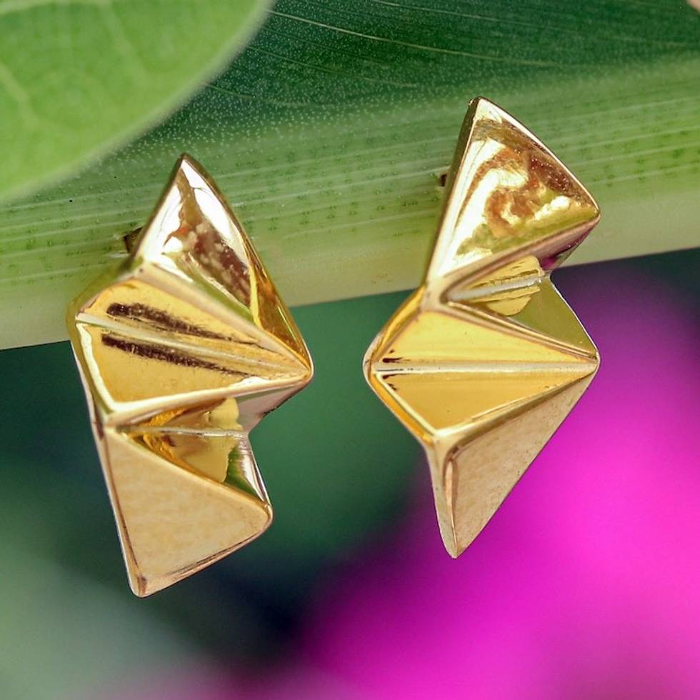 High-Polished Geometric 18k Gold-Plated Stud Earrings 'Shapes of Glory' Item ID: 2671796902