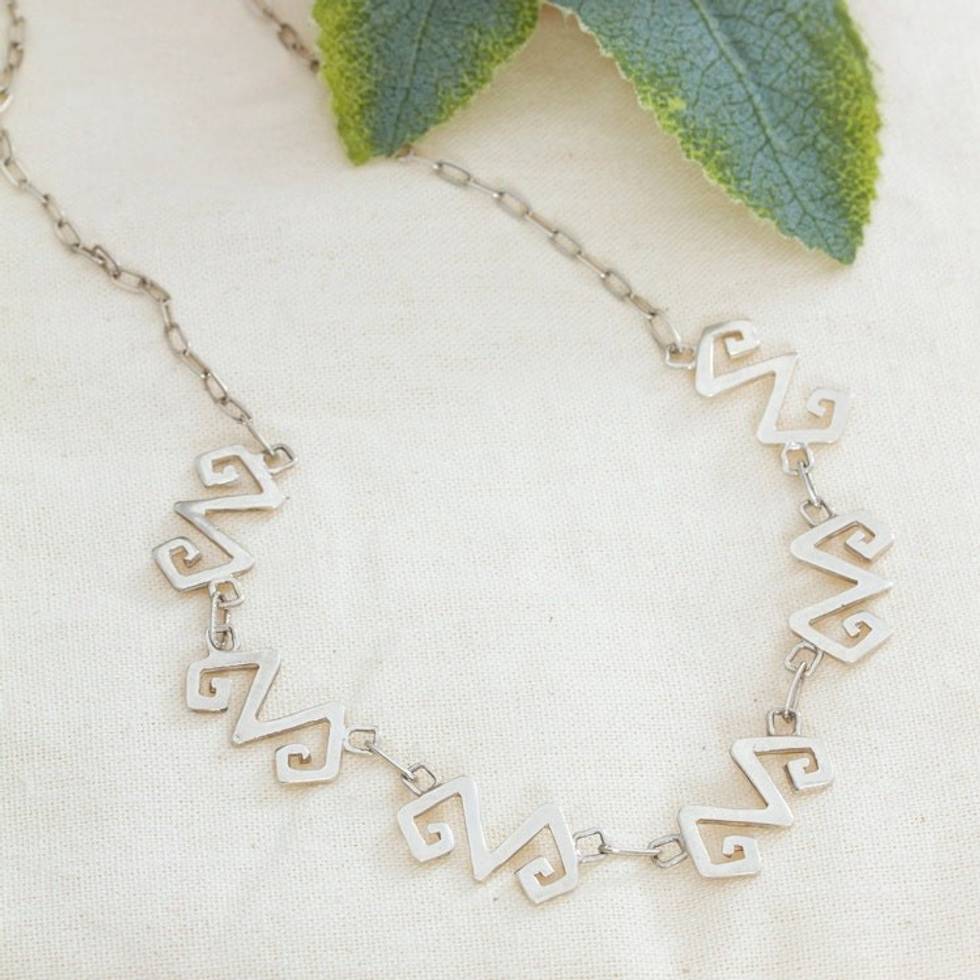 High-Polished Greca-Themed Sterling Silver Link Necklace 'Greca Majesty' Item ID: 2671798695