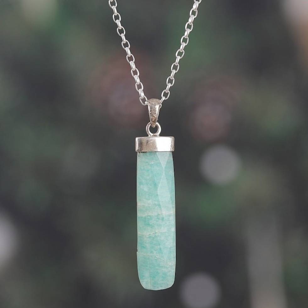 High-Polished Minimalist Natural Amazonite Pendant Necklace 'Fragment of Truth' Item ID: 2671783232