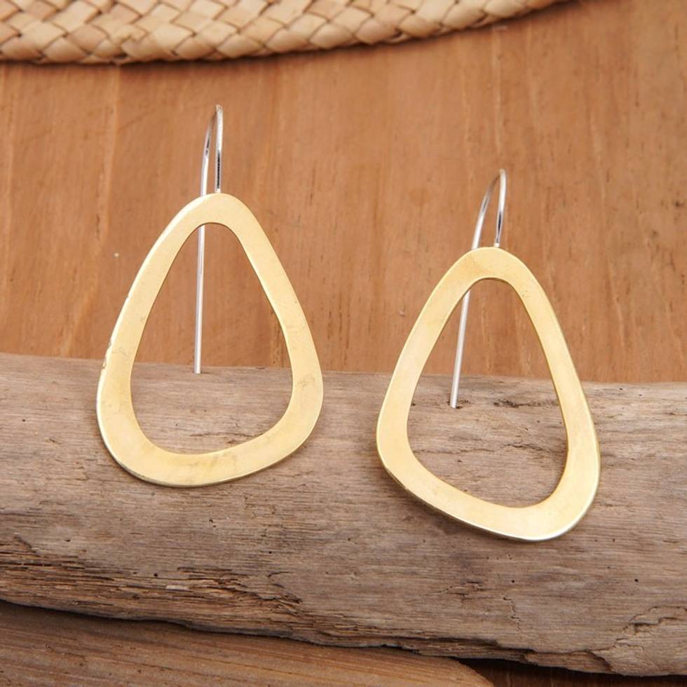 High-Polished Modern 22k Gold-Plated Drop Earrings 'Imperial Modernity' Item ID: 2671667940
