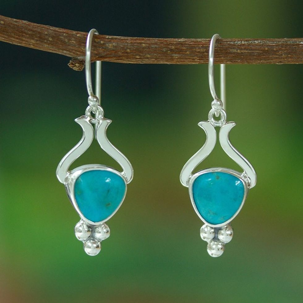 High-Polished Natural Turquoise Dangle Earrings from Mexico 'Serene Realm' Item ID: 2671639162