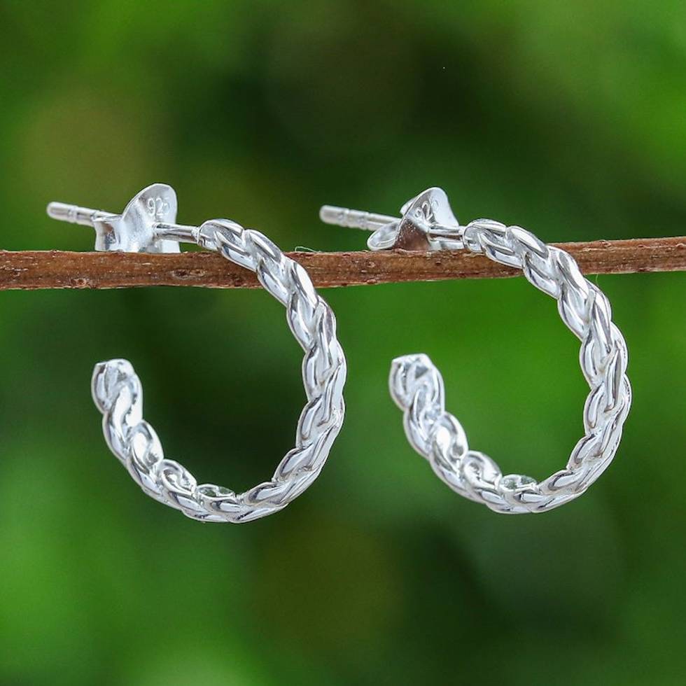 High-Polished Rope-Shaped Sterling Silver Half-Hoop Earrings 'Curled Times' Item ID: 2671796753