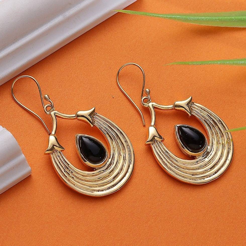High-Polished Semi-Abstract Black Onyx Dangle Earrings 'Midnight Cradle' Item ID: 2671781127