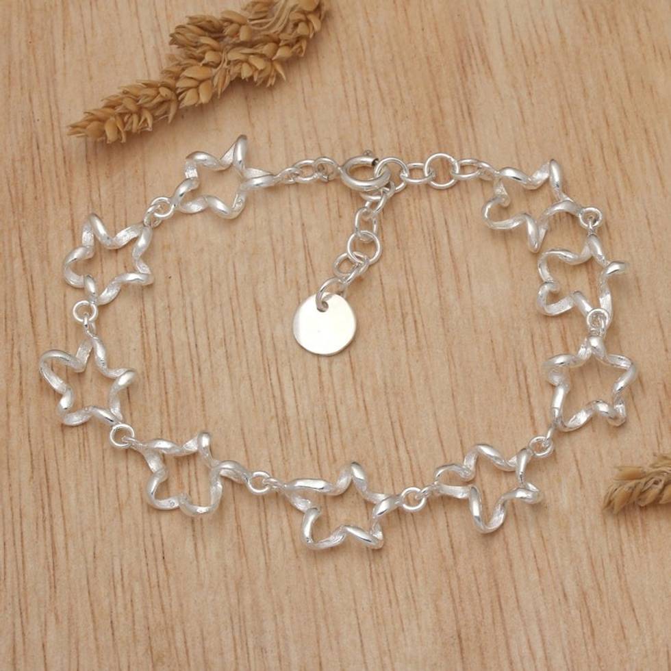 High-Polished Serpentine Star Sterling Silver Link Bracelet 'Serpentine Stars' Item ID: 2671765151