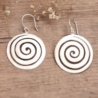 High Polished Spiral Round Sterling Silver Dangle Earrings 'Hypnotic Lollipop' Item ID: 2669923451