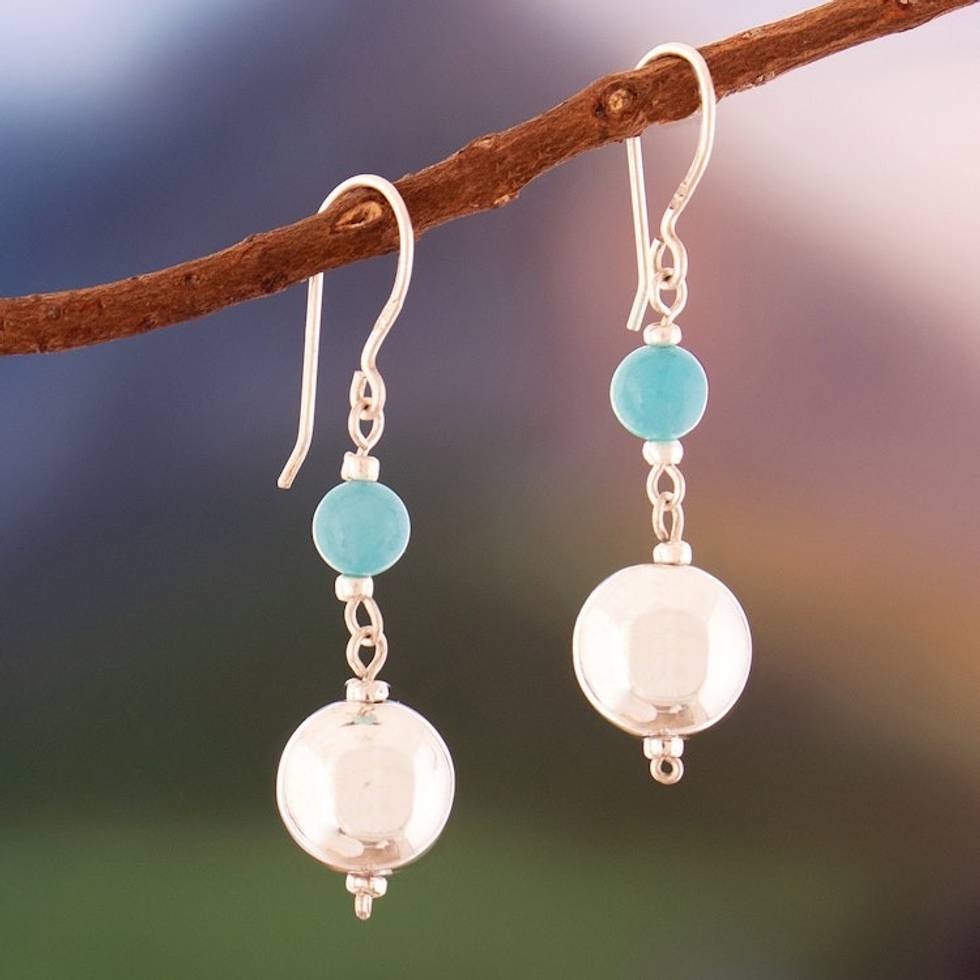 High-Polished Sterling Silver and Amazonite Dangle Earrings 'Lucky Moonlight' Item ID: 2671697865