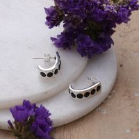 High-Polished Sterling Silver Black Onyx Half-Hoop Earrings 'Mystic Curve' Item ID: 2671624213