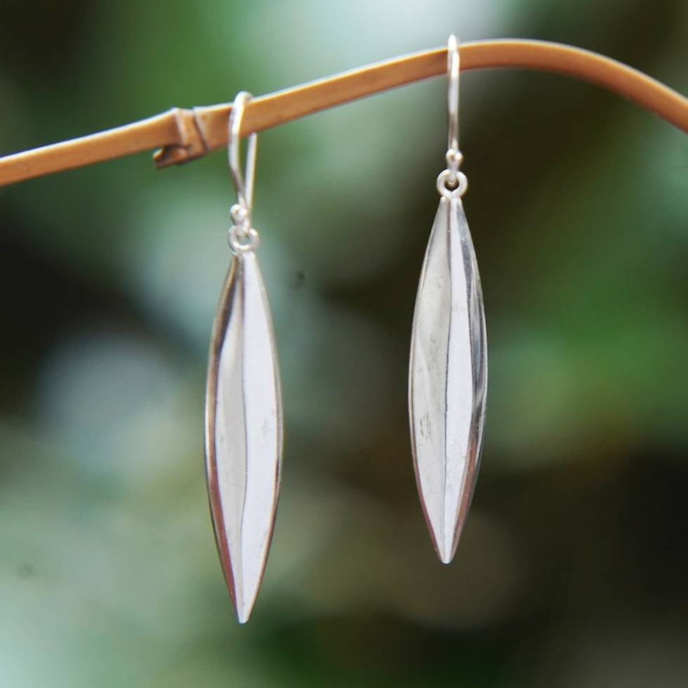 High-Polished Sterling Silver Dangle Earrings from Bali 'Pillar of Life' Item ID: 2671765532