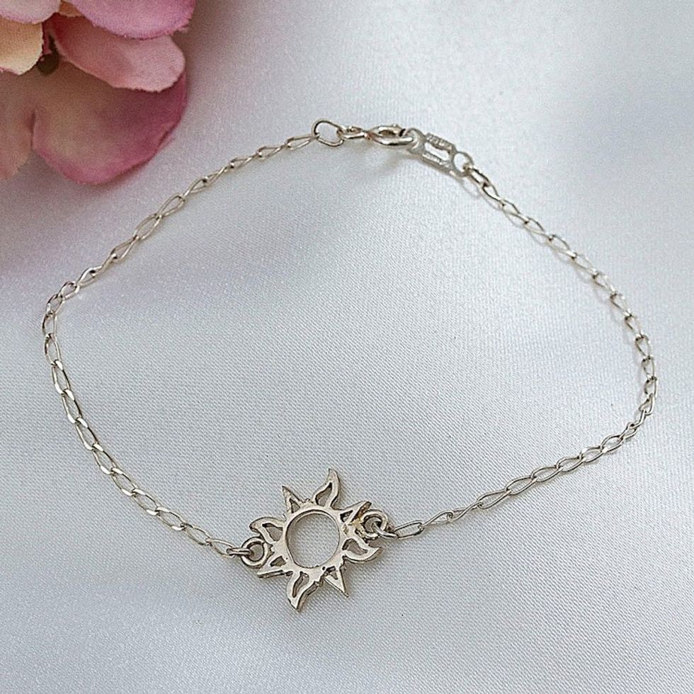 High-Polished Sun-Themed Sterling Silver Pendant Bracelet 'Immortal Sun' Item ID: 2671807733
