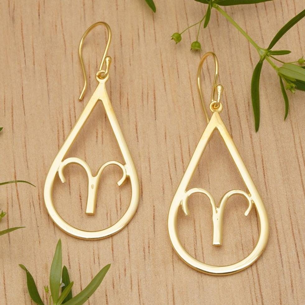 High-Polished Taurus-Themed 18k Gold-Plated Dangle Earrings 'Taurus Glory' Item ID: 2671765150