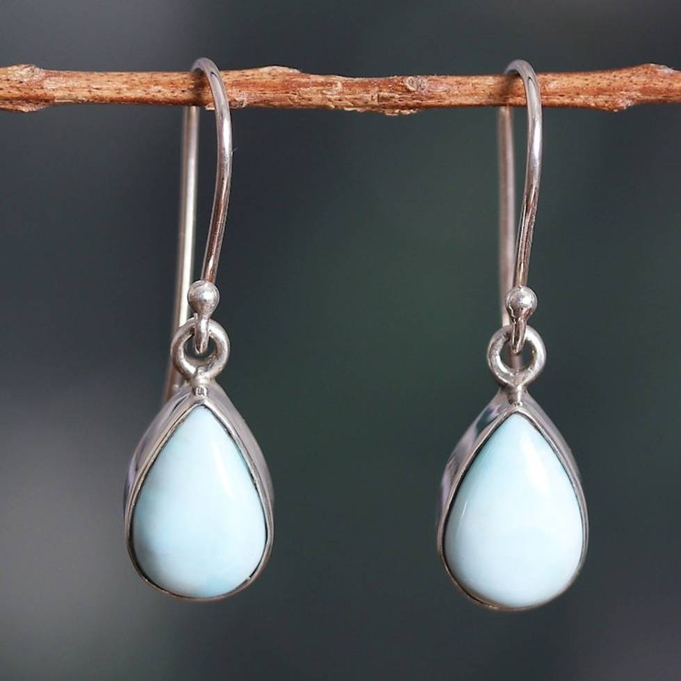 High-Polished Teardrop Natural Larimar Dangle Earrings 'Heaven Droplets' Item ID: 2671781729