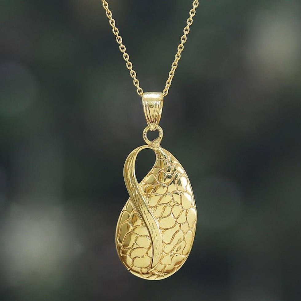 High-Polished Traditional Brass Pendant Necklace from India 'A Sacred Drop' Item ID: 2671781943