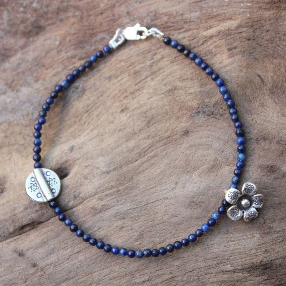 Hill Tribe Silver and Lapis Lazuli Bracelet 'Hill Tribe River' Item ID: 2669926515
