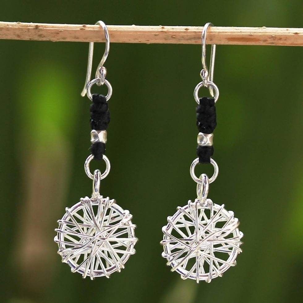 Hill Tribe Silver Dangle Earrings 'Tribal Web' Item ID: 2671802790