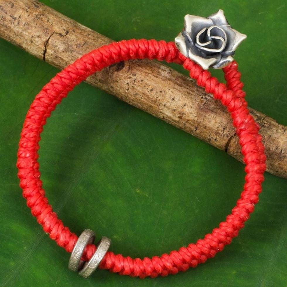 Hill Tribe Silver Rose Clasp on Wristband Bracelet 'Vermillion Rose' Item ID: 2671801826