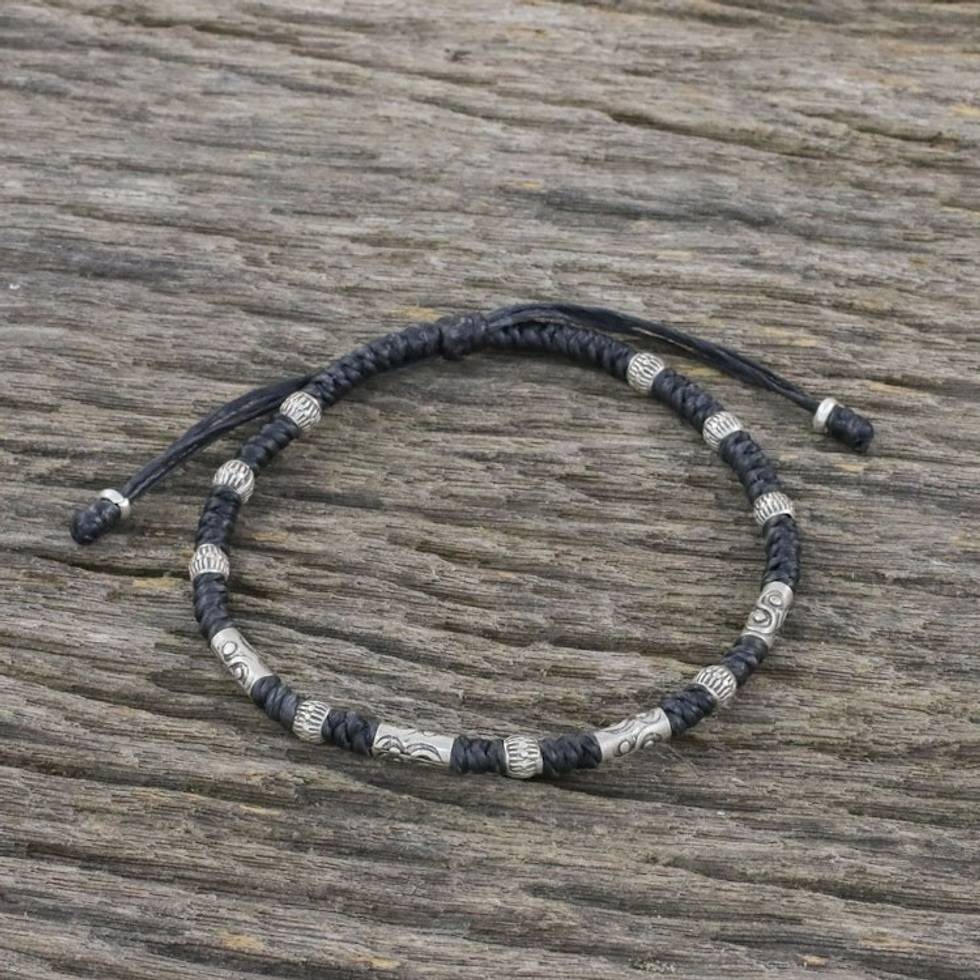 Hill Tribe Style 950 Silver And Black Cord Bracelet 'True Balance in Black' Item ID: 2671801302