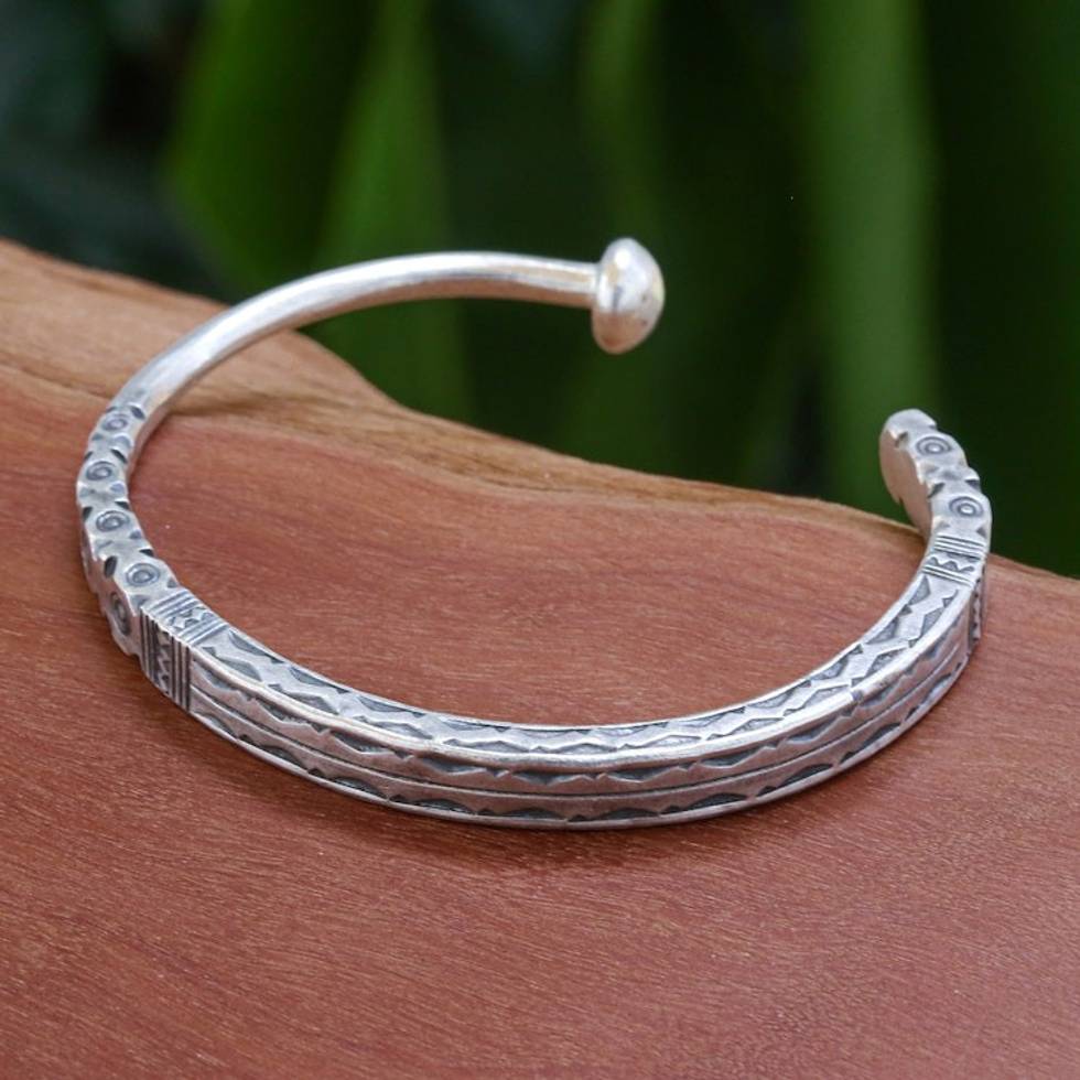 Hill Tribe-Themed Silver Cuff Bracelet from Thailand 'Legacy Luxury' Item ID: 2671797955