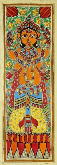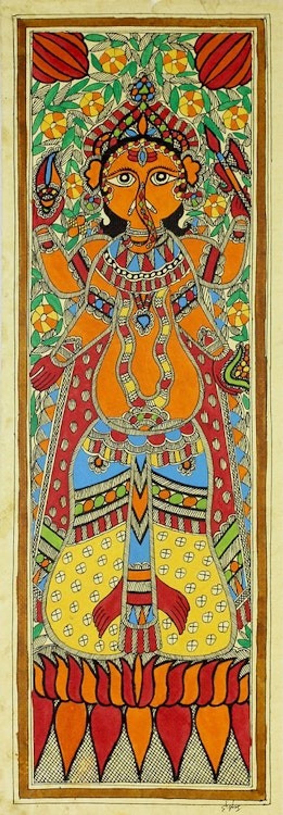 Hindu Deity Signed Madhubani Painting from India 'Happy Ganesha II' Item ID: 2671793302