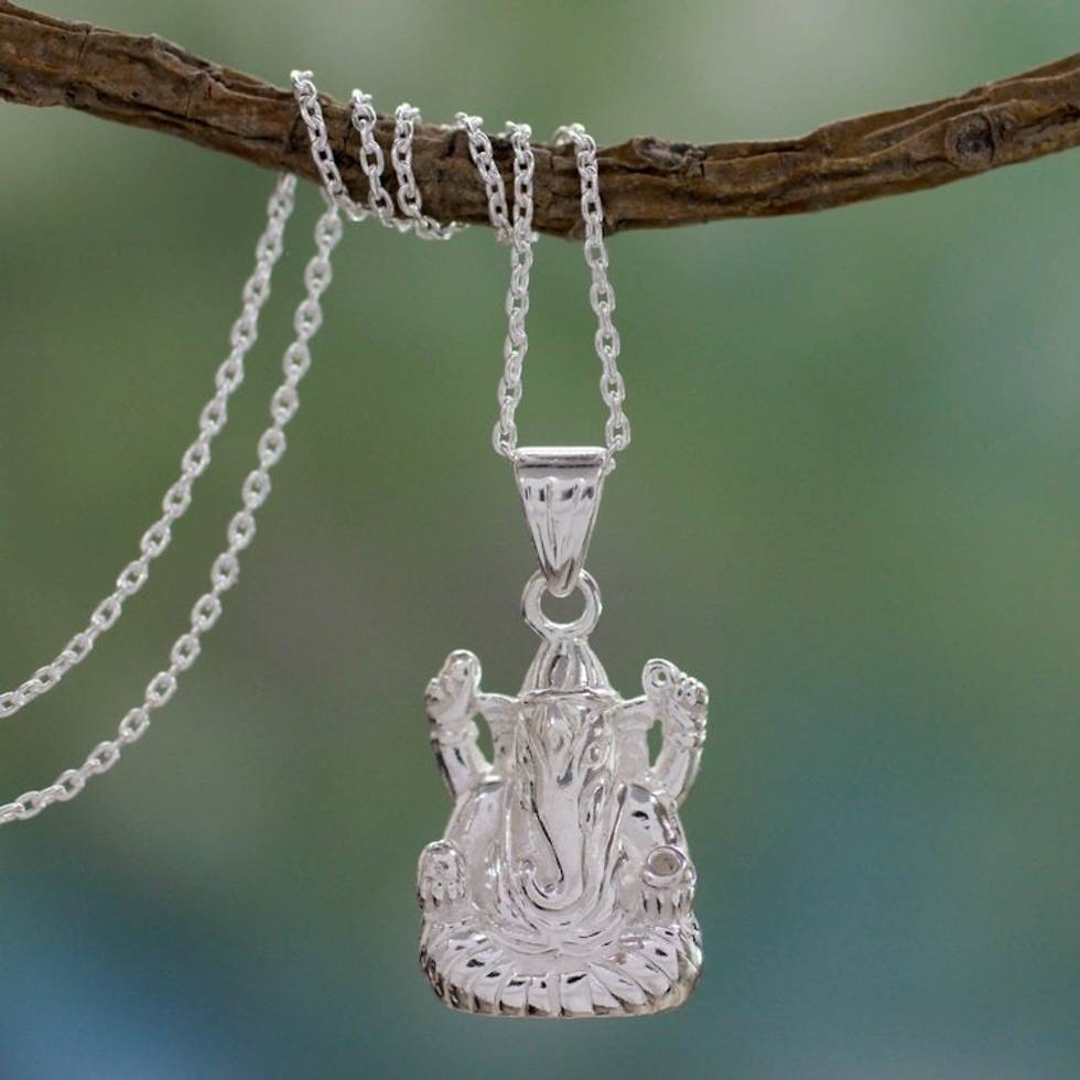 Hindu Jewelery Silver Ganesha Necklace 'Luminous Ganesha' Item ID: 2671793185