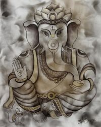 "Besides art, I was also very much interested in photography and took a six-month course in that field upon completion of my 12th standard. After that, I did a four-year diploma course in painting at the Bharatiya Vidya Bhavan Institute of Art and Culture. I was so fascinated by the beauty of art that I couldn't deny the fact that I was in love with it. As I learned every stroke, each line, I was more and more attracted to the world of art. In 1993, after my four-year painting course, I continued this journey and received a BA degree in fine arts. Here I came in contact with a variety of art media and enjoyed every bit of it. I don't want to be bound by any particular theme or style and have tried my hand at almost everything connected with art, like wood sculpting, clay molding, metal, fiberglass, wrought iron, ceramics, etc. I did quite a bit of work in wrought iron and metal sculpting and got a good response. I love working on Ganesha themes and have done quite a lot of pieces on this deity.