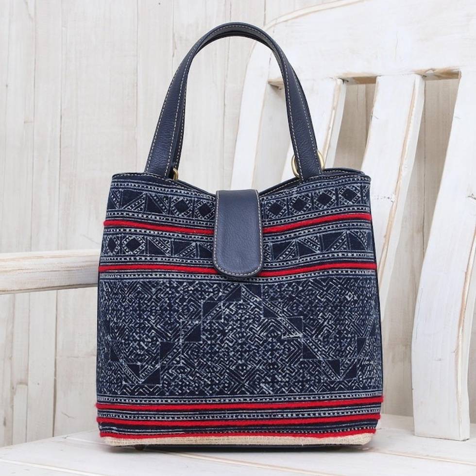 Hmong Batik Cotton Shoulder or Handbag 'Hmong Blues' Item ID: 2671800436