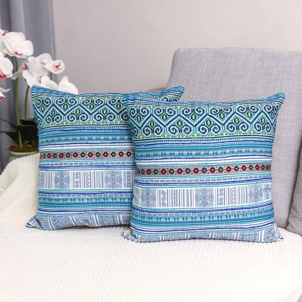 Hmong Cotton Blend Cushion Covers from Thailand 'Hmong Nature' Item ID: 2669926135