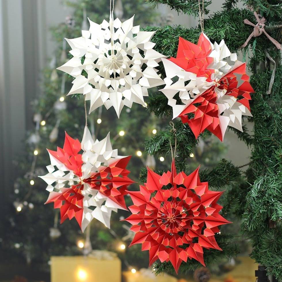 Holiday-Themed Set of 4 Red and White Floral Paper Ornaments 'Merry Blossoms' Item ID: 2671781488