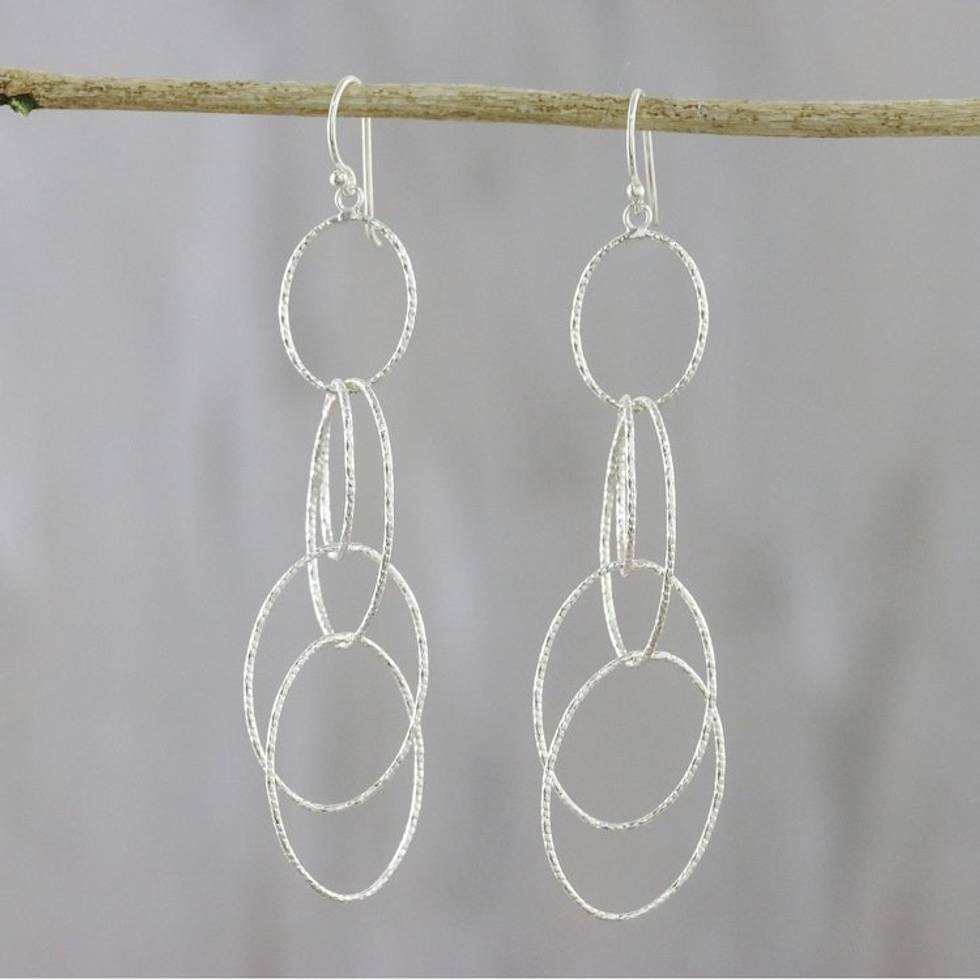 Hooped Sterling Silver Dangle Earrings from Thailand 'Darling Hoops' Item ID: 2669927946