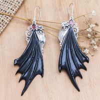 Horn Garnet Sterling Silver Wing Dangle Earrings from Bali 'Wings of Devil' Item ID: 2671612764