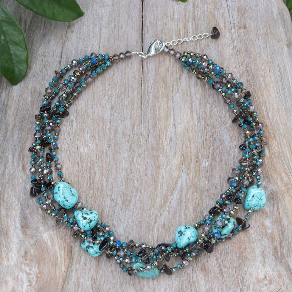 Howlite Smoky Quartz and Glass Beaded Waterfall Necklace 'Spectacular Blue' Item ID: 2671798197