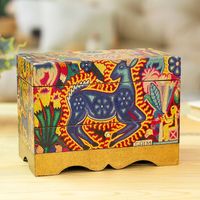 Another "home run" for Ana Maria Gonzales in my book. This small box could be placed almost anywhere and used as a keep-safe for many things, but especially to corral stray jewelry bits and pieces. The interior is plain, stained pinewood, but a bit of cushioning felt could easily be added if desired. I adore the graphic: colorful, bright, happy, and amusing. As with all her boxes (I have five at p... read more