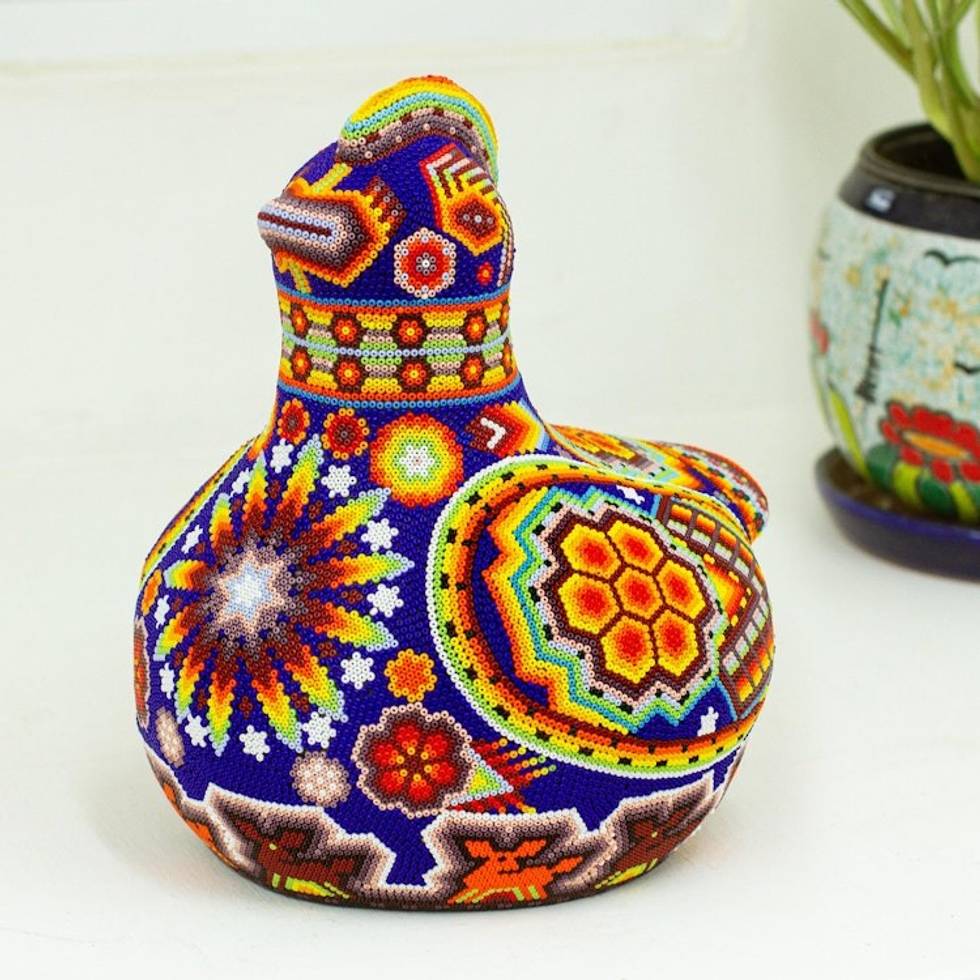 Huichol Handcrafted Bright Beaded Blue Hen Figurine 'Blue Huichol Hen' Item ID: 2669890351