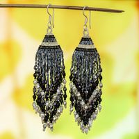 Huichol Silver Grey Black Beadwork Waterfall Earrings 'Silver Grey Luxury' Item ID: 2669932224