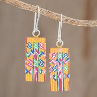 Huipil-Inspired Wood Dangle Earrings from Guatemala 'Tecpan Marvels' Item ID: 2671777029