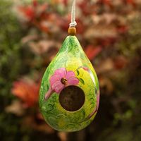 I bought this for my aunt, who loves hummingbirds. She hasn't been feeling well, and I thought watching hummingbirds nest outside her window might cheer her up. Well, of course, she loves the gourd birdhouse. It's beautiful. It might be too beautiful to put outside...that made me laugh, but she promises she will hang it outside, in a sheltered spot so it will be protected from the elements. Right ... read more