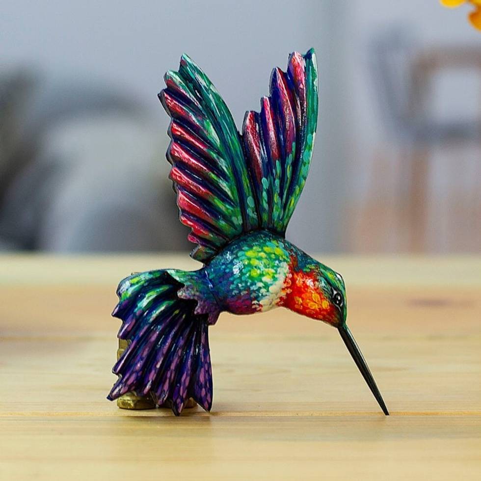 Hummingbird-Themed Hand-Painted Pinewood Magnet from Mexico 'Hummingbird Instant' Item ID: 2671798821