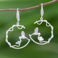 Hummingbird-Themed Sterling Silver Dangle Earrings 'Hummingbird Loops' Item ID: 2671799350