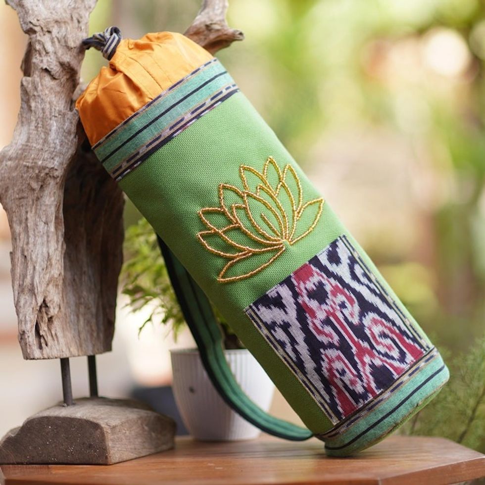 Ikat Cotton Yoga Mat Carrier with Lotus Motif 'Large Golden Lotus' Item ID: 2671821122