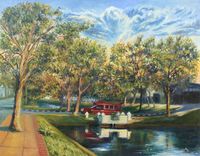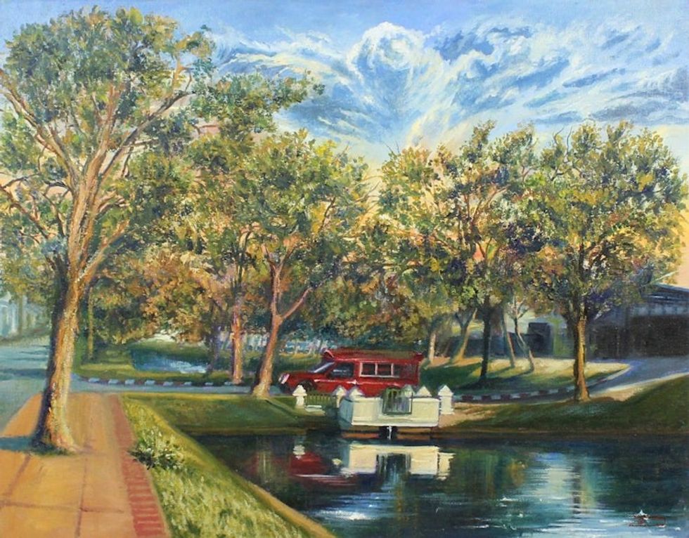 Impressionist Painting of a Tree-Lined Moat from Thailand 'Another Side of Chiang Mai' Item ID: 2671815476