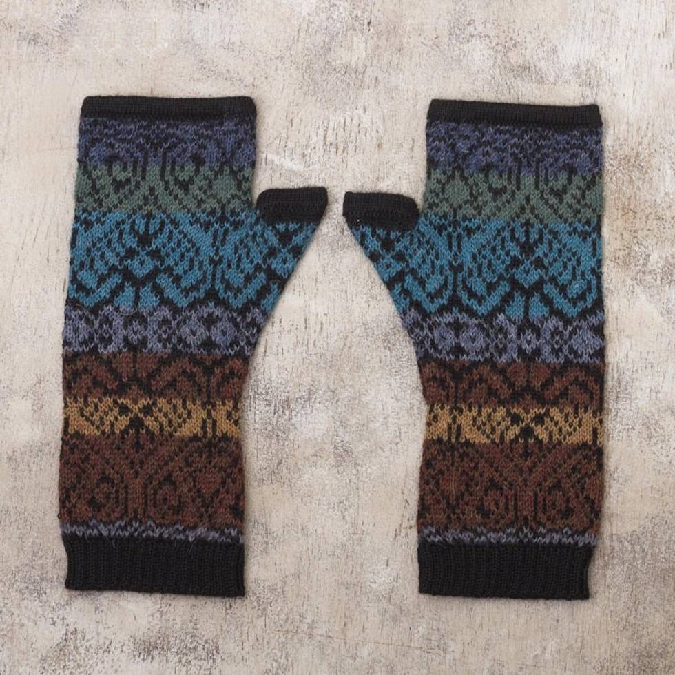 Inca Inspired Alpaca Knit Fingerless Mitts 'Earth and Sky' Item ID: 2671820297