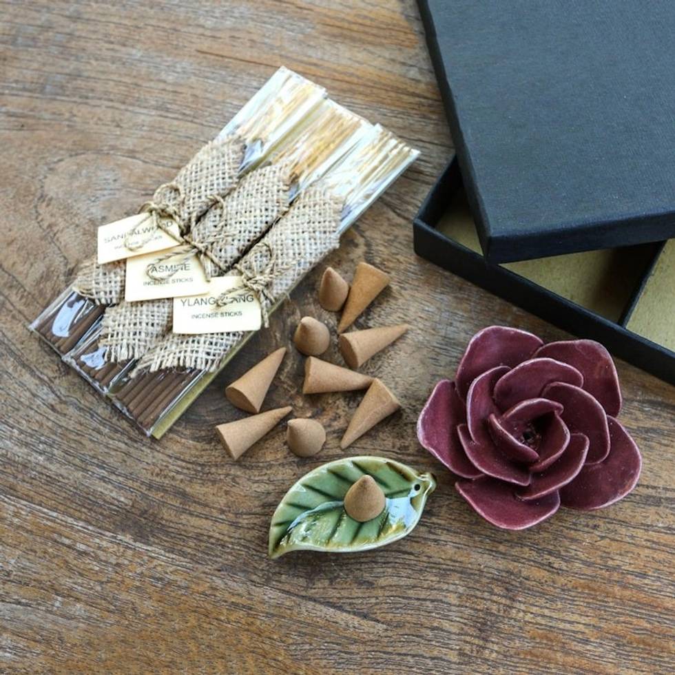 Incense and Ceramic Holders Gift Set 'Burgundy Rose' Item ID: 2671737675