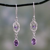 India Artisan Crafted Amethyst and Silver Earrings 'Violet Knot' Item ID: 2669924005
