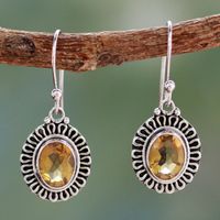 India Artisan Crafted Faceted Citrine Earrings 'Golden Charm' Item ID: 2669943800