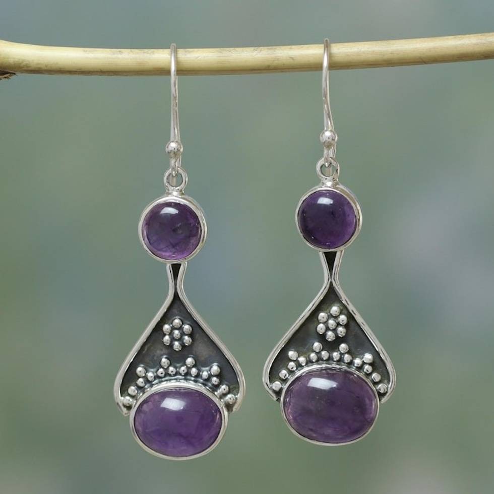 India Floral Jewelry Sterling Silver and Amethyst Earrings 'Mystic Renewal' Item ID: 2671794823