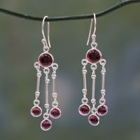 India Handmade Garnet Chandelier Earrings in Sterling Silver 'Dreamer' Item ID: 2669944144
